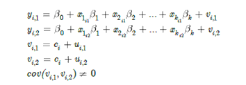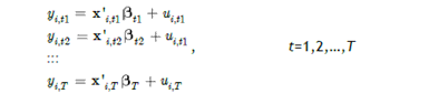 Anggap data ada pada setiap unit cross section atas periode waktu T. Ini adalah unobserved effect model (UEM), disebut juga model komponen error. Kita bisa tuliskan model untuk setiap periode waktu: