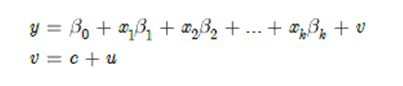 Dimana u tidak berkorelasi dengan semua variabel penjelas di x.
