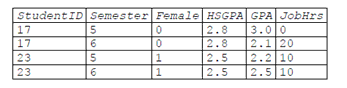 Dasar dari metode panel paling tidak membutuhkan dua “gelombang” pengukuran. Seperti mempertimbangkan antara IPK mahasiswa dan jam kerja selama dua semester.