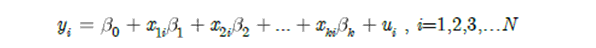 Dimana u tidak berkorelasi dengan semua variabel penjelas di x.