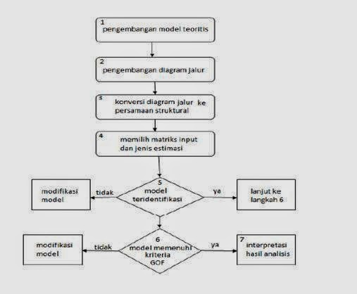 Dari uraian di atas, langkah – langkah analisis dengan SEM dapat digambarkan dengan flow chart berikut ini: